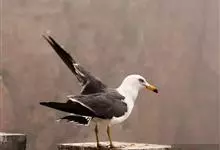 灰背鸥大型水鸟,体长62~69厘米。嘴直,黄色,下嘴先端有红色斑。脚粉红色,头、颈和下体白色,背、肩和翅黑灰色,腰,尾上覆羽和尾白色。冬季头和上胸有褐色纵纹,特别是眼周和后枕较密。飞翔时翅前后缘白色…全部>>