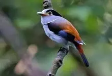 银胸丝冠鸟是雀形目阔嘴鸟科的鸟类,在全世界共分化为10个亚种。体长16-18厘米。嘴宽阔、天蓝色,基部橙色。鼻孔圆形具宽阔的黑色眉纹。上背烟灰色,下背至尾上覆羽栗色,两翅的翼缘白色,翼角羽缘缀浅灰蓝色,…全部>>