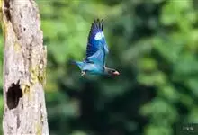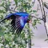 三宝鸟,是佛法僧目佛法僧科三宝鸟属中小型攀禽。成鸟通体为富有光泽的墨蓝绿色,头大而头顶扁平;头部色深近紫黑色,上体至尾泛有铜绿光泽;两翼有幽蓝金属光,初级飞羽黑褐色;羽基淡石青色,形成大块淡蓝,…全部>>