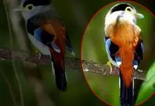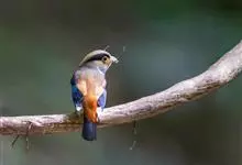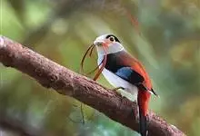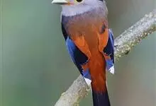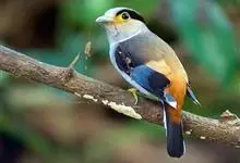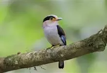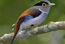 银胸丝冠鸟是雀形目阔嘴鸟科的鸟类,在全世界共分化为10个亚种。体长16-18厘米。嘴宽阔、天蓝色,基部橙色。鼻孔圆形具宽阔的黑色眉纹。上背烟灰色,下背至尾上覆羽栗色,两翅的翼缘白色,翼角羽缘缀浅灰蓝色,…全部>>