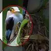 长尾阔嘴鸟是雀形目阔嘴鸟科的鸟类,体长约25厘米,是绿色阔嘴鸟。形长的楔形尾蓝色,喉及脸黄色,顶冠及颈背黑色。两翼黑并具显著的蓝色斑块。头顶具蓝色小点斑,眼后有一黄色点斑。亚成鸟多为绿色。结群活动于…全部>>