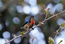 红胸啄花鸟:体重5-10克,体长60-92毫米。体形纤小。雄鸟上体呈辉亮的金属绿色;下体棕黄,胸部具一朱红色块斑,极易与其他啄花鸟区别。雌鸟上体呈橄榄绿,下体棕黄色。虹膜褐色,嘴褐黑色或角灰色,…全部>>