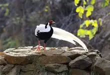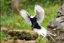 白鹇,是鸡形目雉科鹇属的一种留鸟。雄鸟上体白色并具黑色纹,下体黑色,头顶具黑色长羽冠,尾白而长;雌鸟体型较小,以橄榄褐色为主,下体具白色或皮黄色细纹;虹膜褐色,眼周具红色裸皮,喙黄色,脚鲜红色。…全部>>