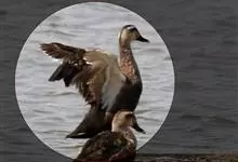 绿头鸭属游禽,大型鸭类。体长47-62厘米,体重大约1千克,外形大小和家鸭相似。雄鸟嘴黄绿色,脚橙黄色,头和颈辉绿色,颈部有一明显的白色领环。上体黑褐色,腰和尾上覆羽黑色,两对中央尾羽亦为黑色,且向…全部>>