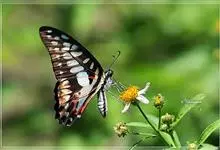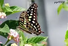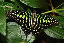 青带凤蝶Graphium sarpedon ,又名青凤蝶,是最普遍的中型凤蝶,飞行速度很快。青带凤蝶的翅膀中央有许多浅蓝色的斑点,很整齐地排列成一条直线。这些斑点由上而下逐渐变大,就像一条青色的带子。全部>>