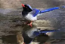 红嘴蓝鹊,别名山鹊、长尾鹊,是鸦科蓝鹊属的一种观赏性较强的大型鸣禽。该物种为体长54~65cm,头、颈、喉和胸黑色,头顶至后颈有一块白色至淡蓝白色或紫灰色块斑,其余上体紫蓝灰色或淡蓝灰褐色。尾长呈凸状,…全部>>