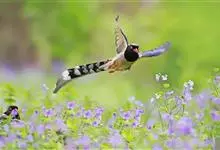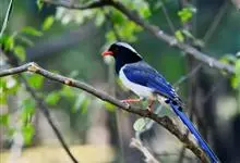 红嘴蓝鹊,别名山鹊、长尾鹊,是鸦科蓝鹊属的一种观赏性较强的大型鸣禽。该物种为体长54~65cm,头、颈、喉和胸黑色,头顶至后颈有一块白色至淡蓝白色或紫灰色块斑,其余上体紫蓝灰色或淡蓝灰褐色。尾长呈凸状,…全部>>