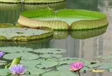 王莲:是睡莲科王莲属植物统称。多年生或一年生大型浮叶草本,有直立的根状短茎和发达的不定须根,白色。拥有巨型奇特似盘的叶片,浮于水面,十分壮观,并以它娇容多变的花色和浓厚的香味闻名于世。夏季开花,单生,…全部>>