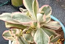 红缘莲花掌属蔷薇目、景天科植物,原产大西洋的加那利群岛。质厚,蓝绿色,被白霜,叶缘红褐色。聚伞花序,花浅黄色,有时带红晕。叶形叶色较美,有一定的观赏价值,多盆栽用于点缀室内;可放置于电视、电脑旁,…全部>>
