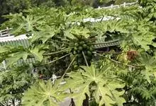 番木瓜,番木瓜科番木瓜属的常绿软木质小乔木,高达10米,具有乳汁;茎不分枝或有时于损伤处分枝;叶大且聚生于茎顶,近似盾形,叶柄中空;花单性或两性,有些品种雄株偶尔生两性花或雌花,…全部>>