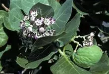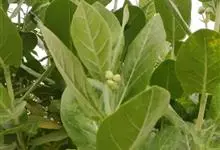 牛角瓜 W. T. Aiton)是夹竹桃科、牛角瓜属直立灌木,高达3米,全株具乳汁;茎黄白色,枝粗壮,幼枝部分被灰白色绒毛。叶倒卵状长圆形或椭圆状长圆形,长8-20厘米,宽3.5-9.5厘米。…全部>>