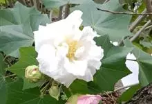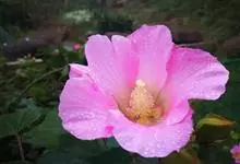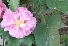 木芙蓉,锦葵科木槿属落叶灌木或小乔木。小枝上有细绒毛;叶片为卵状心形,托叶为披针形,常早落;花单生,花萼为钟形,花冠初为白色或淡红色,后逐渐变为深红色;果实为扁球形,有淡黄色的毛附着。花期8到10月。…全部>>