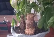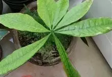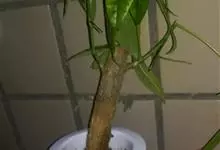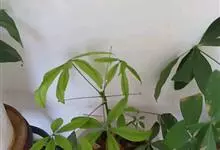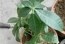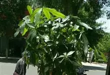 瓜栗 Walp. ),俗称发财树,木棉科小乔木,高4-5米,树冠较松散,幼枝栗褐色,无毛。小叶具短柄或近无柄。花单生枝顶叶腋;花梗粗壮,被黄色星状茸毛,脱落;萼杯状,近革质;花瓣淡黄绿色,狭披针形…全部>>