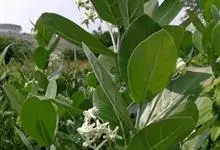 牛角瓜 W. T. Aiton)是夹竹桃科、牛角瓜属直立灌木,高达3米,全株具乳汁;茎黄白色,枝粗壮,幼枝部分被灰白色绒毛。叶倒卵状长圆形或椭圆状长圆形,长8-20厘米,宽3.5-9.5厘米。…全部>>