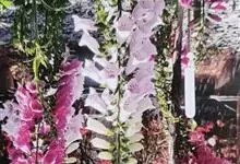 毛地黄是车前科、毛地黄属一年生或多年生草本植物。株高0.5—1米,茎直立,少分枝,全株被灰白色短柔毛和腺毛叶基生,呈莲座状,卵圆形或卵状披针形。顶生总状花序,花冠钟状,紫红色,内面有浅白斑点。菊果卵形。…全部>>
