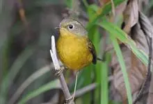 黄腹树莺:小型鸟类,体长10-11厘米。雌雄两性羽色相似。上体概暗橄榄褐色;颏、喉沾棕,胸和两胁呈灰橄榄褐色,下体余部淡黄色。虹膜褐色;上嘴褐色,下嘴灰黄色;脚淡棕色。虹膜褐色;上嘴褐色或棕褐色,…全部>>