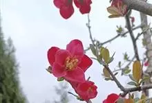 贴梗海棠Nakai)是蔷薇科、木瓜海棠属植物。落叶灌木,高达2米,枝条直立开展,有刺。叶片卵形至椭圆形,稀长椭圆形,长3-9厘米,宽1.5-5厘米。花先叶开放,3-5朵簇生于二年生老枝上。…全部>>