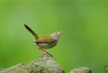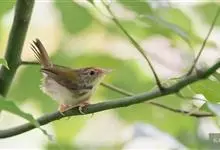 普通缝叶莺,是雀形目鹅科莺亚科缝叶莺属一种。体长10-14厘米,体重7-10克,雄鸟前额棕红,头顶至枕棕橄榄褐,上体橄榄绿染黄,飞羽及尾羽暗褐;繁殖期雄鸟的中央尾羽特形延长,下体淡皮黄白色。…全部>>