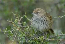 矛斑蝗莺:体长11-14厘米,体重9-13克。上体橄榄褐色密布粗著的黑褐色纵纹,眉纹淡黄色细而不明显,下体乳白色具黑色纵纹,尾羽腹面无白端。虹膜暗褐色;嘴黑褐色,下嘴基黄褐色;脚肉色。…全部>>