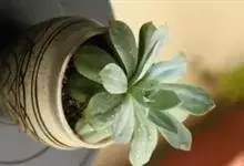 红缘莲花掌属蔷薇目、景天科植物,原产大西洋的加那利群岛。质厚,蓝绿色,被白霜,叶缘红褐色。聚伞花序,花浅黄色,有时带红晕。叶形叶色较美,有一定的观赏价值,多盆栽用于点缀室内;可放置于电视、电脑旁,…全部>>