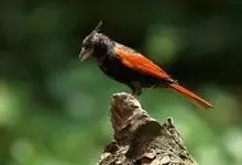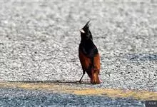 凤头鹀:属小型鸣禽,体重21-31克,体长134-175毫米。以头顶的细长羽冠为特征,雄鸟全身几乎均为黑色具蓝色光泽,两翅和尾以及尾上覆羽栗红色。雌鸟具短的褐色羽冠,上体暗橄榄褐色,…全部>>