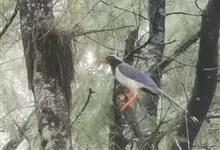 红嘴蓝鹊,别名山鹊、长尾鹊,是鸦科蓝鹊属的一种观赏性较强的大型鸣禽。该物种为体长54~65cm,头、颈、喉和胸黑色,头顶至后颈有一块白色至淡蓝白色或紫灰色块斑,其余上体紫蓝灰色或淡蓝灰褐色。尾长呈凸状,…全部>>