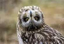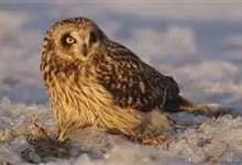 短耳鸮又名小耳木兔、田猫王、夜猫子等,是鸮形目鸱鸮科耳鸮属中小型猛禽动物。成鸟面盘显著,眼周黑色;眼先及内侧眉纹灰白色,面盘余部棕黄色杂以黑色细羽干纹;耳簇羽短小而几乎不外露,…全部>>