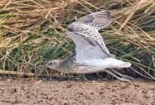 红脚鹬:体长28厘米,上体褐灰,下体白色,胸具褐色纵纹。飞行时腰部白色明显,次级飞羽具明显白色外缘。尾上具黑白色细斑。虹膜黑褐色,嘴长直而尖,基部橙红色,尖端黑褐色。脚较细长,亮橙红色,…全部>>