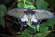 美凤蝶又名多型蓝凤蝶、大凤蝶,是鳞目凤蝶科凤蝶属动物。美凤蝶雄蝶无尾突,翅黑色,正面各翅室中部有深色条纹,分布蓝色鳞片,反面前后翅基部有红斑,后翅臀角有环状红斑。雌蝶具多型,前翅浅灰色,外缘和翅脉黑色,…全部>>