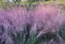 粉黛乱子草:是禾本目、禾本科、乱子草属植物。多年生暖季型草本,株高可达30-90厘米,宽可达60-90厘米。顶端呈拱形,绿色叶片纤细。顶生云雾状粉色花絮,花期9-11月,…全部>>