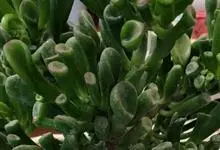 筒叶花月,是景天科青锁龙属的多年生草本植物。植株多分株,灌木状,茎较粗壮,圆柱形,表皮灰褐色;叶片肉质,互生,呈圆筒状,簇生于茎或分枝顶端,叶端呈斜截形,截面为椭圆形;花呈星状,淡白色;花期秋季。…全部>>