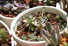 子持莲华 Hara)是景天科瓦松属多年生肉质草本植物。茎葡富,可萌生侧芽、易群生,叶片呈半圆形或长卵形,排列如莲座状、蓝绿色,表面略有白粉,…全部>>