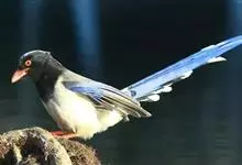 红嘴蓝鹊,别名山鹊、长尾鹊,是鸦科蓝鹊属的一种观赏性较强的大型鸣禽。该物种为体长54~65cm,头、颈、喉和胸黑色,头顶至后颈有一块白色至淡蓝白色或紫灰色块斑,其余上体紫蓝灰色或淡蓝灰褐色。尾长呈凸状,…全部>>