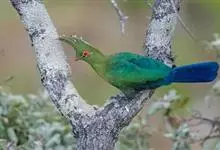 蕉鹃科有6属23种。该科鸟类一般为中等体型,体长35~75厘米,体重230~950克。体色或者大致呈绿色,翼和尾绿色、蓝色或紫色;或者全身大部分为青紫色或灰色。通常有漂亮的羽冠和长尾巴。该鸟具半对趾足,…全部>>