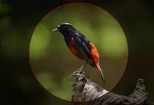 橙胸咬鹃:全长约28厘米。雄鸟头、颈橄榄绿色,上体及中央尾羽栗色;中央尾羽具黑色端,其外侧的2对尾羽黑色,最外3对尾羽基部黑色具白端;翼覆羽有密的黑、白相间横,飞羽黑褐;颏、喉橄榄色,胸橄榄黄,…全部>>