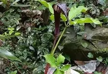 花南星,天南星科天南星属的植物,为百合纲天南星科天南星属的植物,是中国的特有植物。块茎近球形,直径1-4厘米。叶柄长17-35厘米,下部1/2-2/3具鞘,黄绿色,有紫色斑块。花序柄与叶柄近等长,…全部>>
