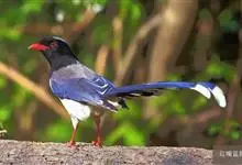 红嘴蓝鹊,别名山鹊、长尾鹊,是鸦科蓝鹊属的一种观赏性较强的大型鸣禽。该物种为体长54~65cm,头、颈、喉和胸黑色,头顶至后颈有一块白色至淡蓝白色或紫灰色块斑,其余上体紫蓝灰色或淡蓝灰褐色。尾长呈凸状,…全部>>