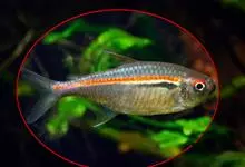 霓虹灯鱼(霓虹灯鱼、红莲灯鱼)鲤形目 > 脂鲤科 > 脂鲤科属 > 霓虹灯鱼