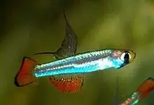宝莲灯,学名阿氏霓虹脂鲤,也叫红莲灯、新日光灯鱼、新红莲灯鱼。是鲤形目、脂鲤亚目、脂鲤科,霓虹脂鲤属的一种重要观赏鱼,原产于南美洲亚马逊河流域。体纺锤形。体长约在4~5厘米,体表两侧各有一条绿带和一…全部>>