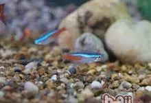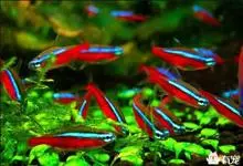 霓虹灯鱼又被称为红绿灯鱼、红莲灯鱼。鱼纲,脂鲤科。原产亚马孙河上游。体长3~4厘米,体形较细,色泽美丽,体上部的绿线,因光线角度不同,有时显出蓝色,与体下部的红线极为协调,又与腹部全红的新红绿灯鱼〔…全部>>