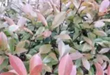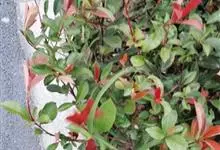 红叶石楠 是蔷薇科,石楠属杂交种,为常绿小乔木或灌木,乔木高可达5米、灌木高可达2米。叶片革质,长圆形至倒卵状、披针形,叶端渐尖,叶基楔形,叶缘有带腺的锯齿,花多而密,复伞房花序,花白色,梨果黄红色,…全部>>