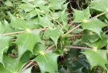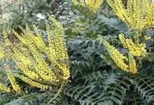 十大功劳 Fedde),小檗科十大功劳属常绿灌木植物。叶子较大且较多,呈椭圆形,绿色,表面光滑无毛,叶柄较长;花朵较小,呈多边形,黄色,花瓣对称分布,表面有绒毛;果实呈圆形,褐色,…全部>>