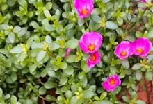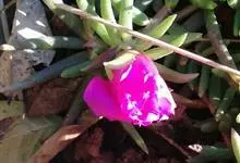 大花马齿苋:一年生草本,高10-30厘米。茎平卧或斜升,紫红色,多分枝,节上丛生毛。叶密集枝端,较下的叶不规则互生,叶片细圆柱形,无毛。花单生或数朵簇生枝端,直径2.5-4厘米,…全部>>