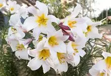 麝香百合:在中国台湾亦称铁炮百合。鳞茎球形或近球形,高2.5-5厘米;鳞片白色。茎高45-90厘米,绿色,基部为淡红色。叶散生,披针形或矩圆状披针形,两面无毛。花单生或2-3朵;花喇叭形,白色,筒外…全部>>