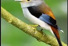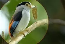 银胸丝冠鸟是雀形目阔嘴鸟科的鸟类,在全世界共分化为10个亚种。体长16-18厘米。嘴宽阔、天蓝色,基部橙色。鼻孔圆形具宽阔的黑色眉纹。上背烟灰色,下背至尾上覆羽栗色,两翅的翼缘白色,翼角羽缘缀浅灰蓝色,…全部>>