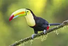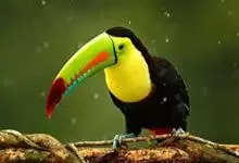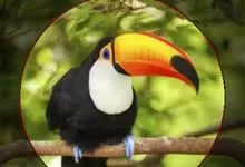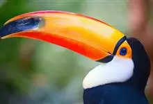 鵎鵼:又名巨嘴鸟。体长约67厘米,嘴巨大,长17~24厘米,宽5~9厘米,形似嘴刀。嘴非常漂亮,上半部黄色,略呈淡绿色,下半部呈蔚蓝色,喙尖点缀着一点殷红。眼睛四周镶嵌着天蓝色羽毛眼圈,胸脯橙黄色,…全部>>