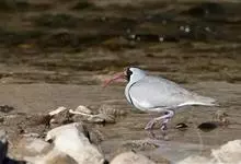 鹮嘴鹬体长40厘米,是一种灰、黑及白色鹬。识别特征为腿及嘴红色,嘴长且下弯。一道黑白色的横带将灰色的上胸与其白色的下部隔开。翼下白色,翼上中心具大片白色斑。幼鸟上体具皮黄色鳞状纹,黑色斑纹不甚清楚,…全部>>
