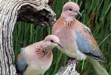 棕斑鸠,是鸽形目鸠鸽科斑鸠属鸟类。整个头和颈淡粉红色,头顶和前额较暗,颊、喉较淡,前颈基部两侧羽毛黑色具宽阔的棕色端斑,使前颈两侧形成黑色斑点状的黑斑。…全部>>