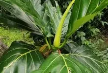 面包树 Fosberg)是桑科波罗蜜属植物。叶大,成熟之叶羽状分裂,表面深绿色,背面浅绿色;穗状花序单生叶腋,雄花序长圆筒形至长椭圆形或棒状;聚花果倒卵圆形或近球形;花期为3~5月,果期为7~10月。…全部>>