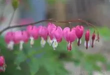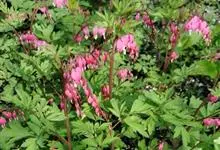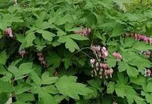荷包牡丹 Fukuhara),是罂粟科荷包牡丹属的多年生草本植物,株高30-60厘米,具肉质根状茎;茎直立呈圆柱形;叶二回三出全裂,状似牡丹叶;总状花序顶生,基部为心形,花瓣紫红色至粉红色,稀白色,…全部>>
